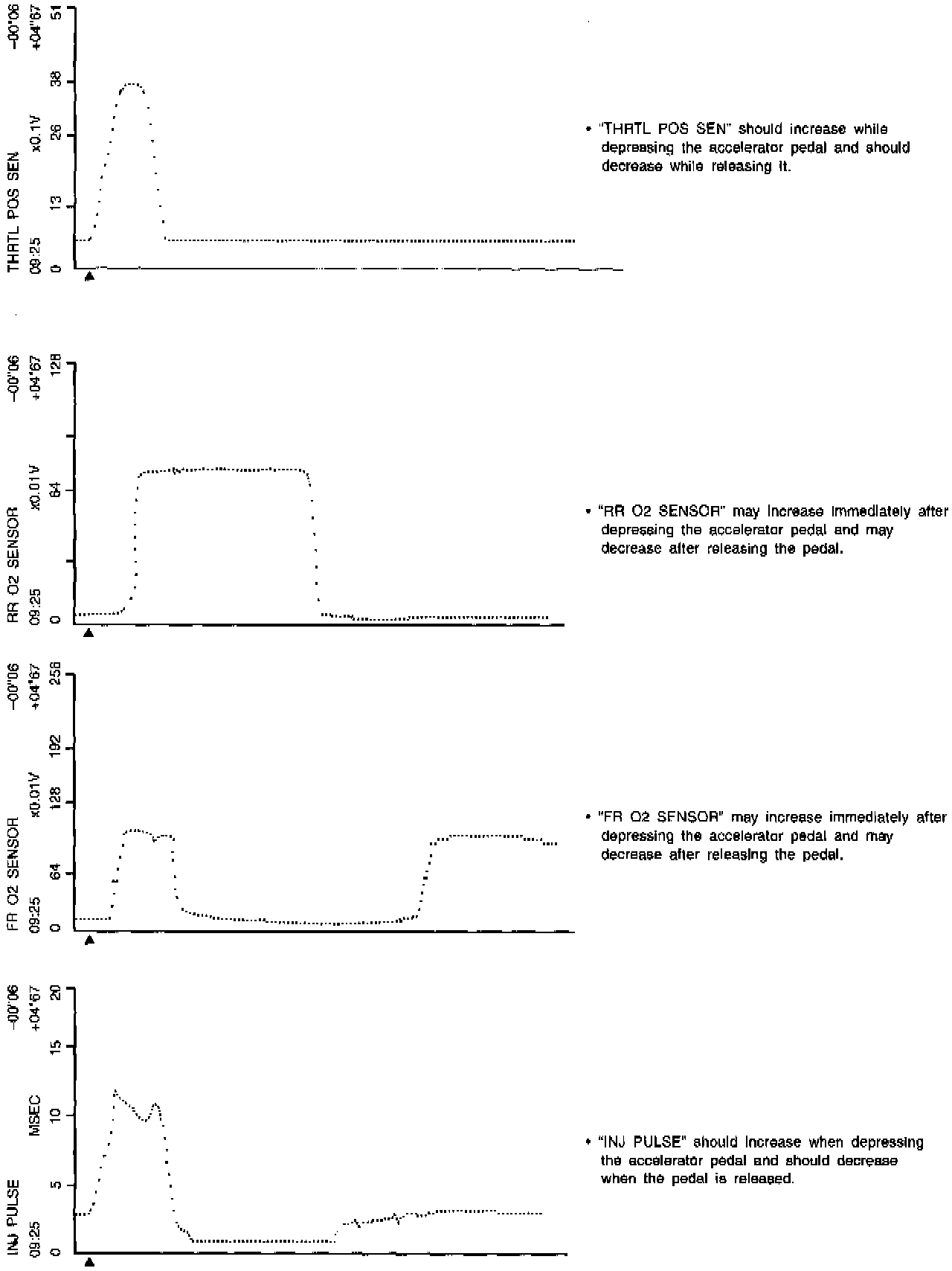 CMPS.RPM (REF), MAS AIR/FL SE, THRTL POS SEN, RR O2 SEN, FR O2 SEN, INJ PULSE
