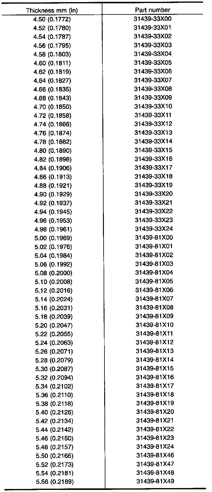 DIFFERENTIAL SIDE BEARING PRELOAD ADJUSTING SHIMS