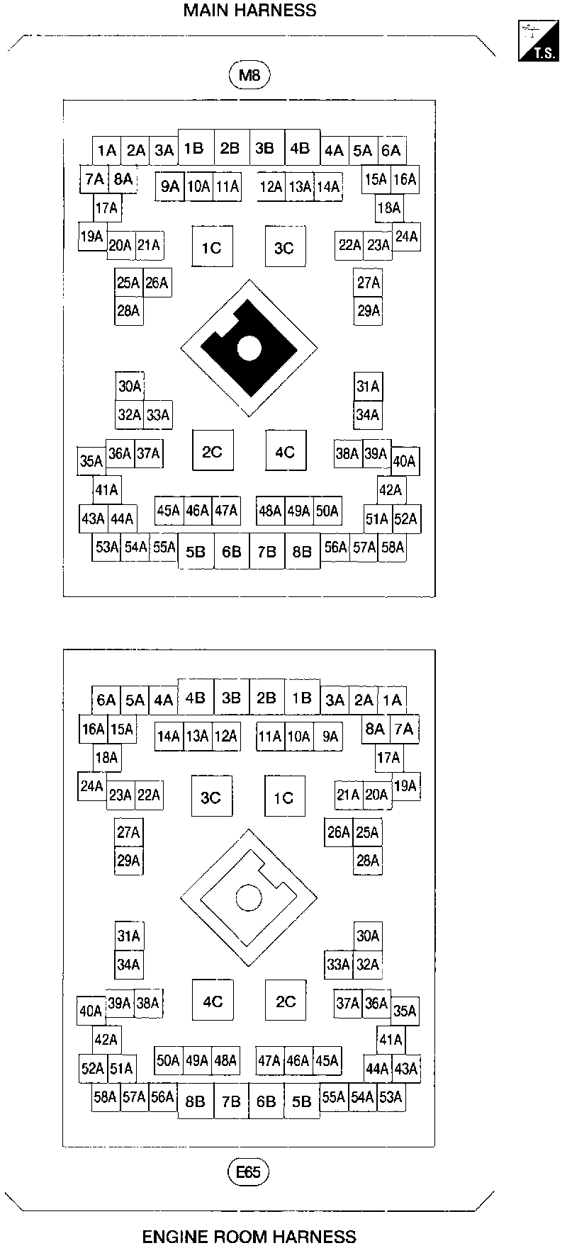 M8, E65 Main Harness And Engine Room Harness Terminal Arrangement