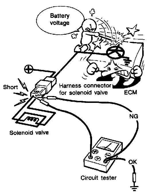 - When measuring ECM signals with a circuit tester, never allow the two tester probes to contact. Accidental contact of probes will cause a short circuit and damage the ECM power transistor.