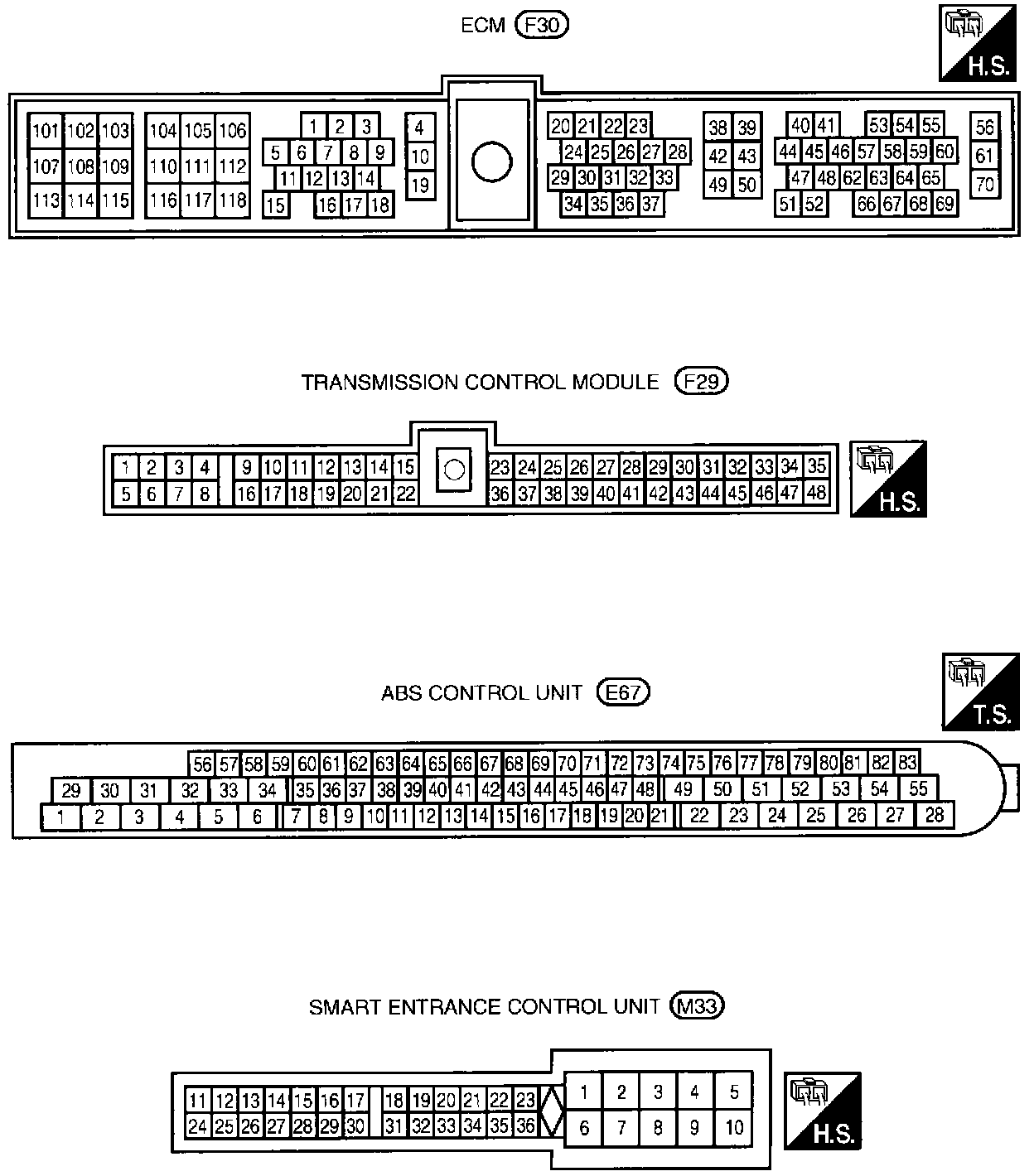 M8, E65 Main Harness And Engine Room Harness Terminal Arrangement