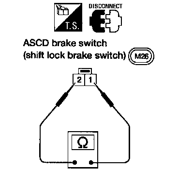 Check ASCD brake switch (shift lock brake switch) after adjusting brake pedal - refer to ("Adjustment", "BRAKE PEDAL AND BRACKET").