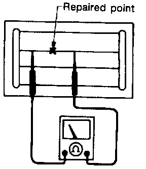 4. After repair has been completed, check repaired wire for continuity. This check should be conducted 10 minutes after silver composition is deposited.