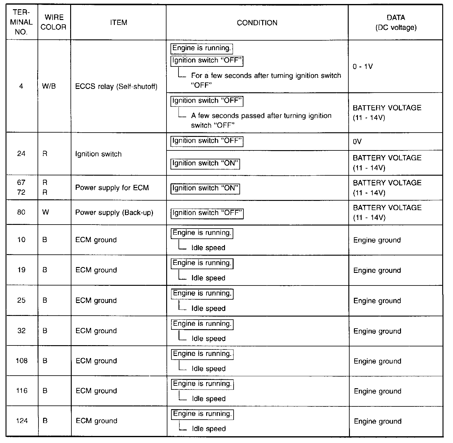 Specification data are reference values, and are measured between each terminal and (25) (ECM ground).