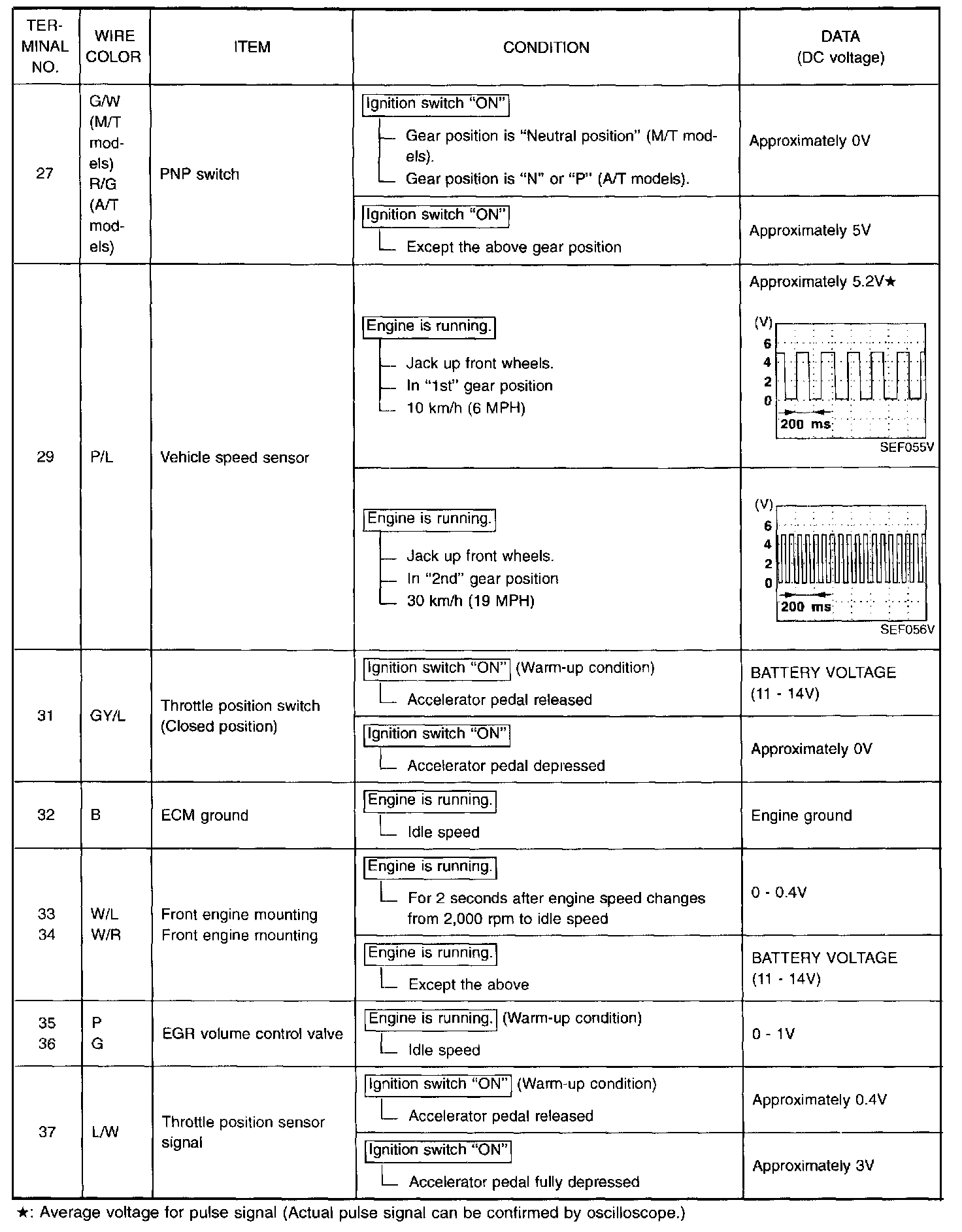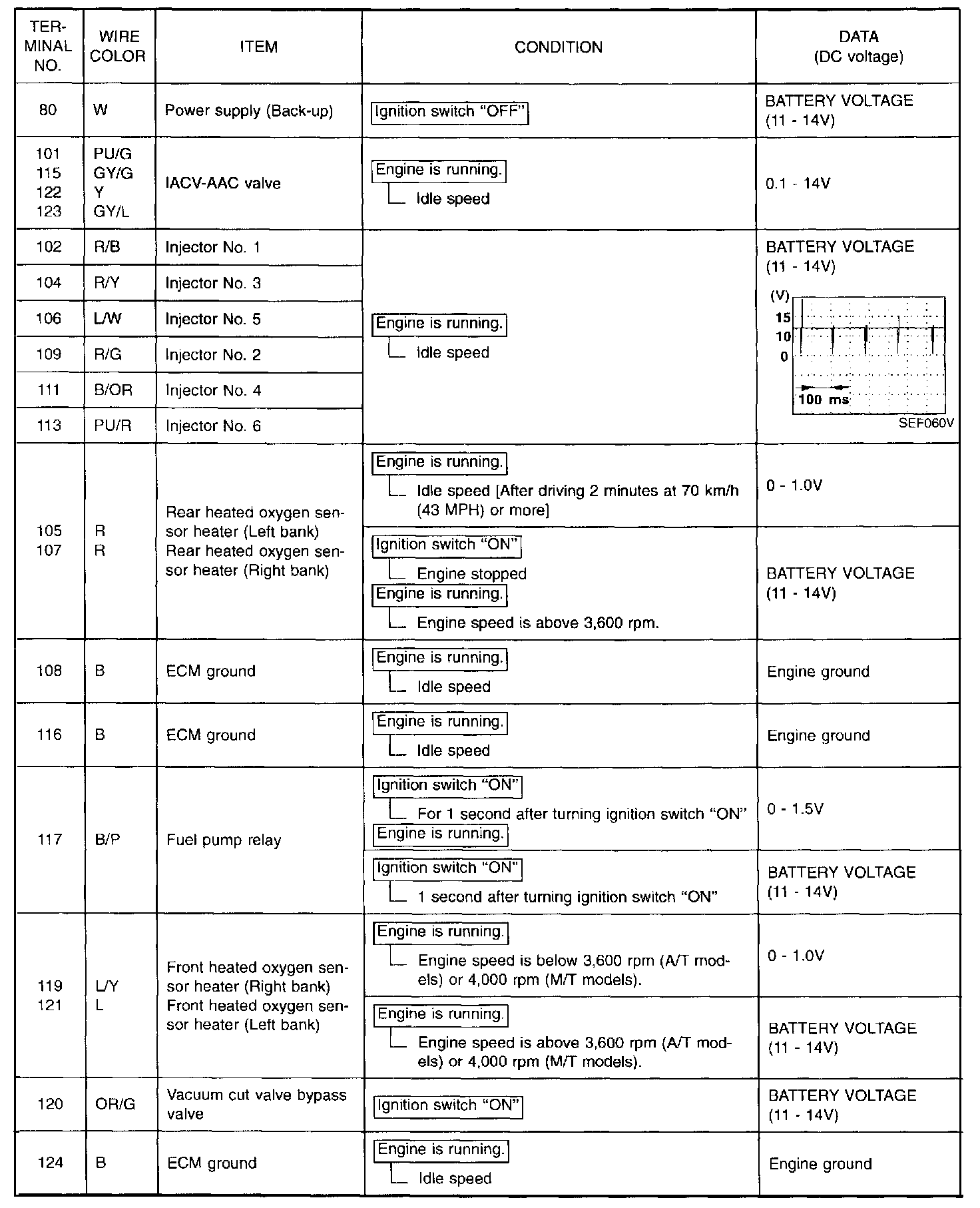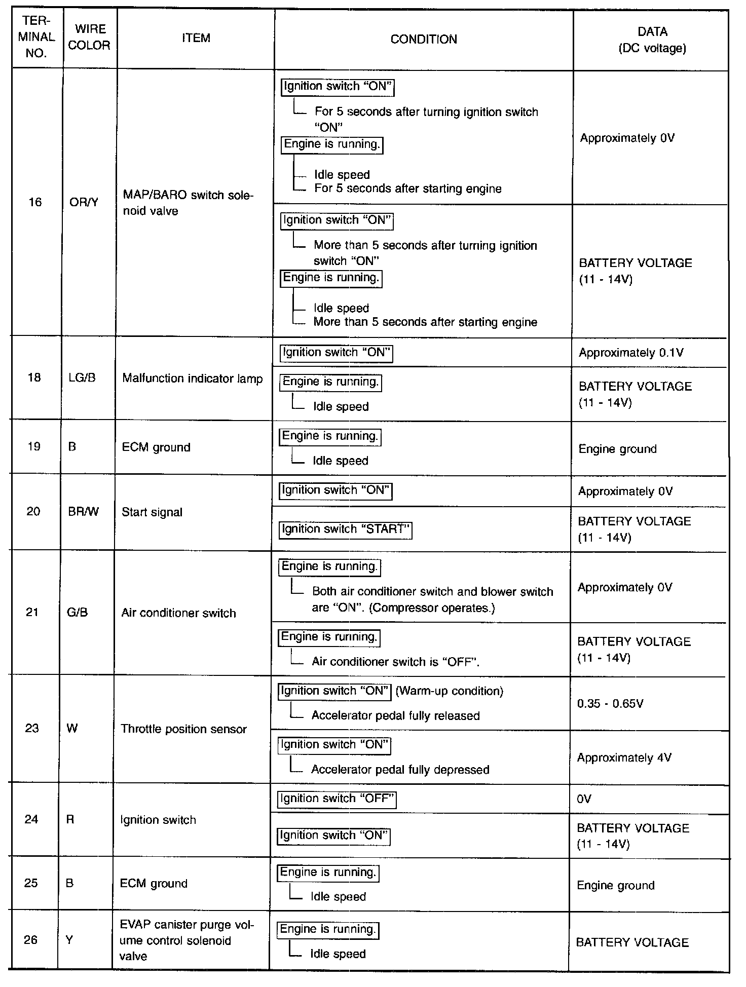 Specification data are reference values, and are measured between each terminal and (25) (ECM ground).