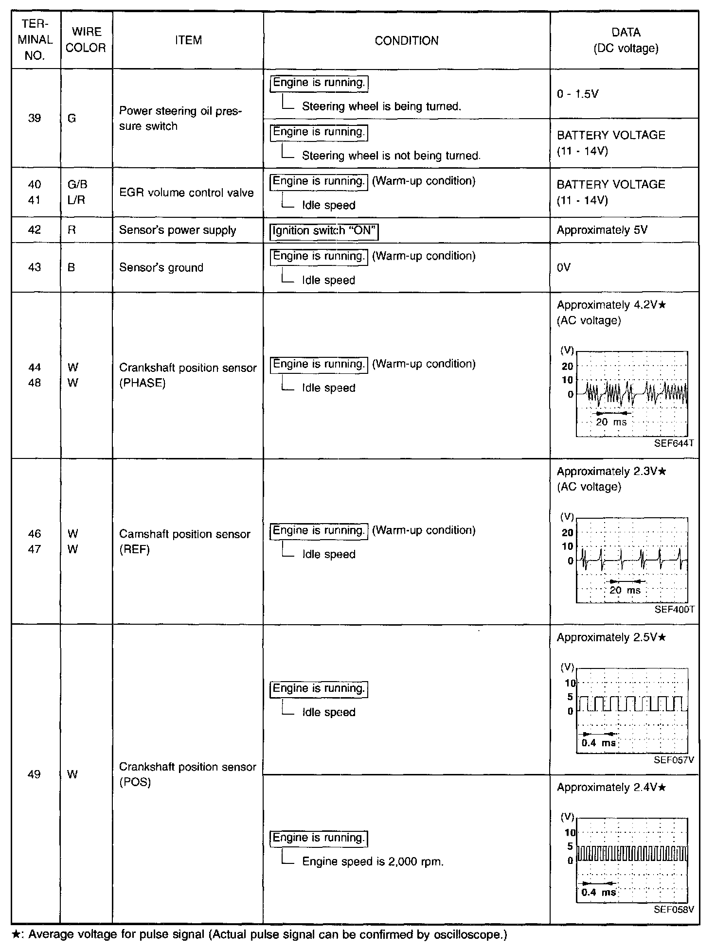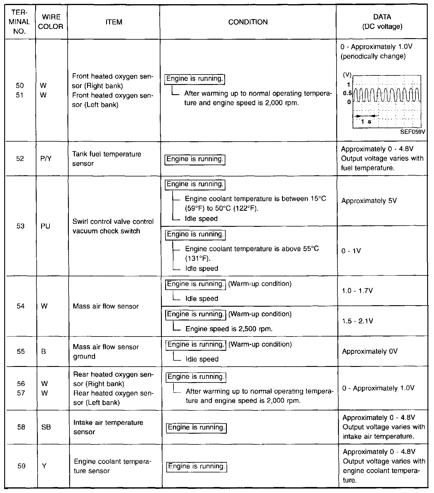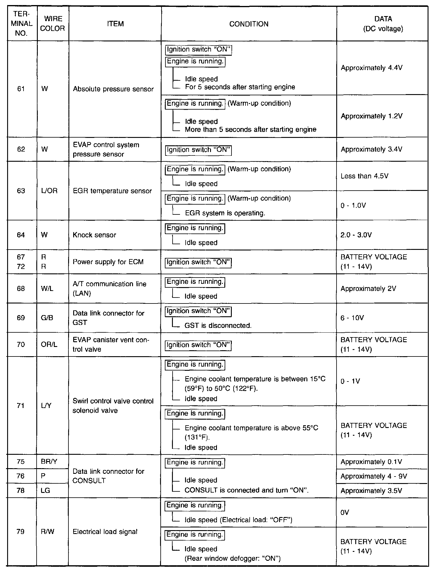 Specification data are reference values, and are measured between each terminal and (25) (ECM ground).