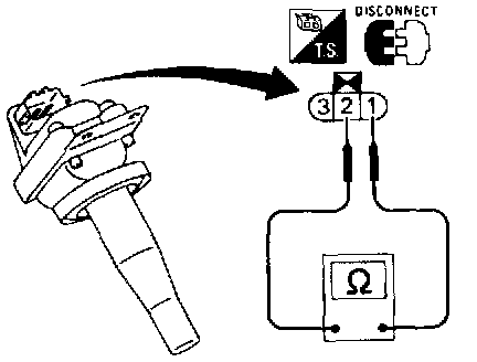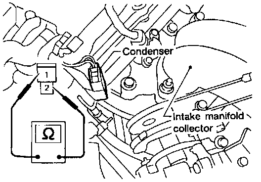 2. Check ignition coil with power transistor for resistance between terminals (1) and (2).