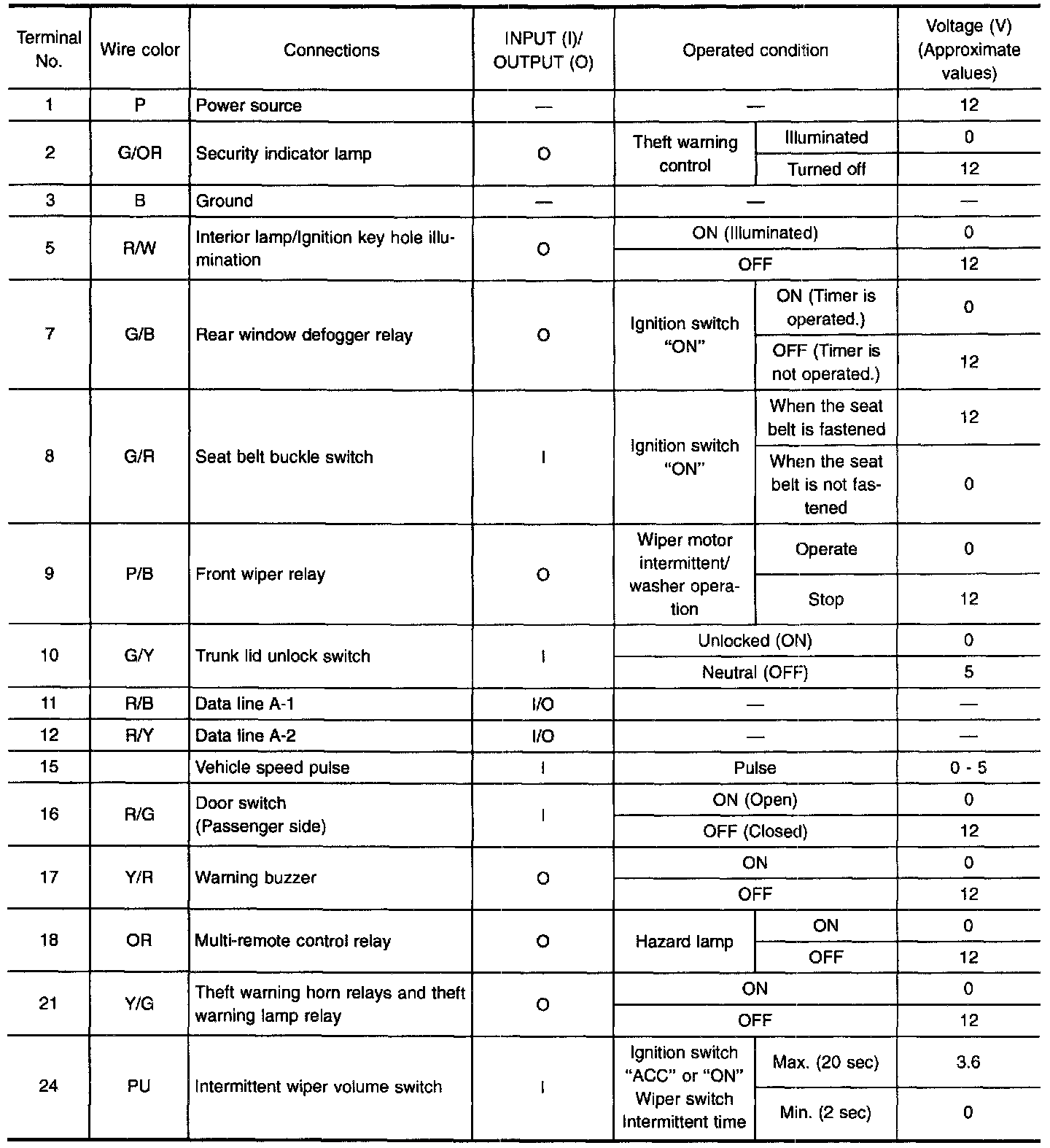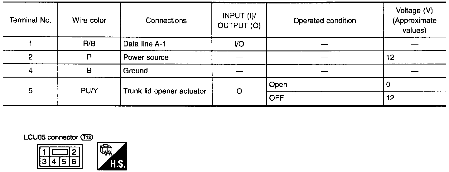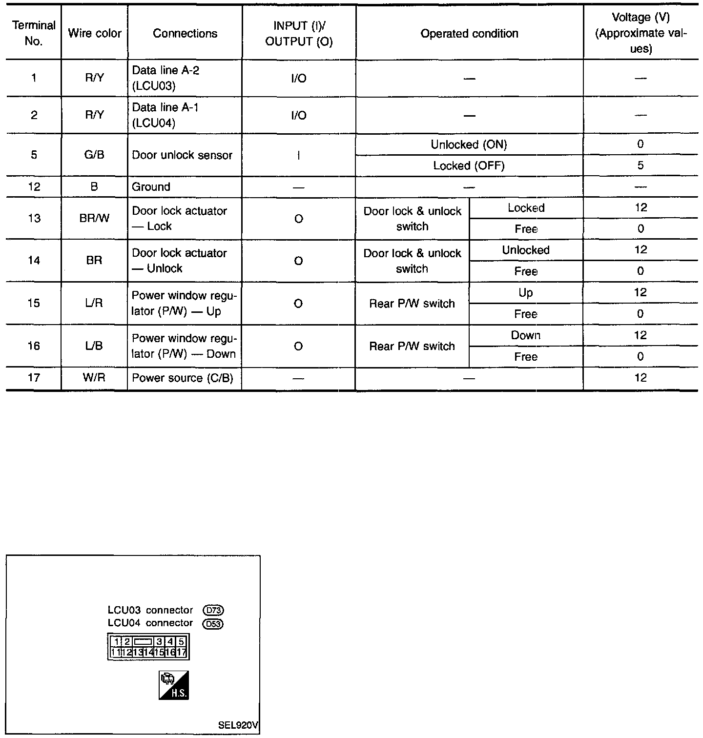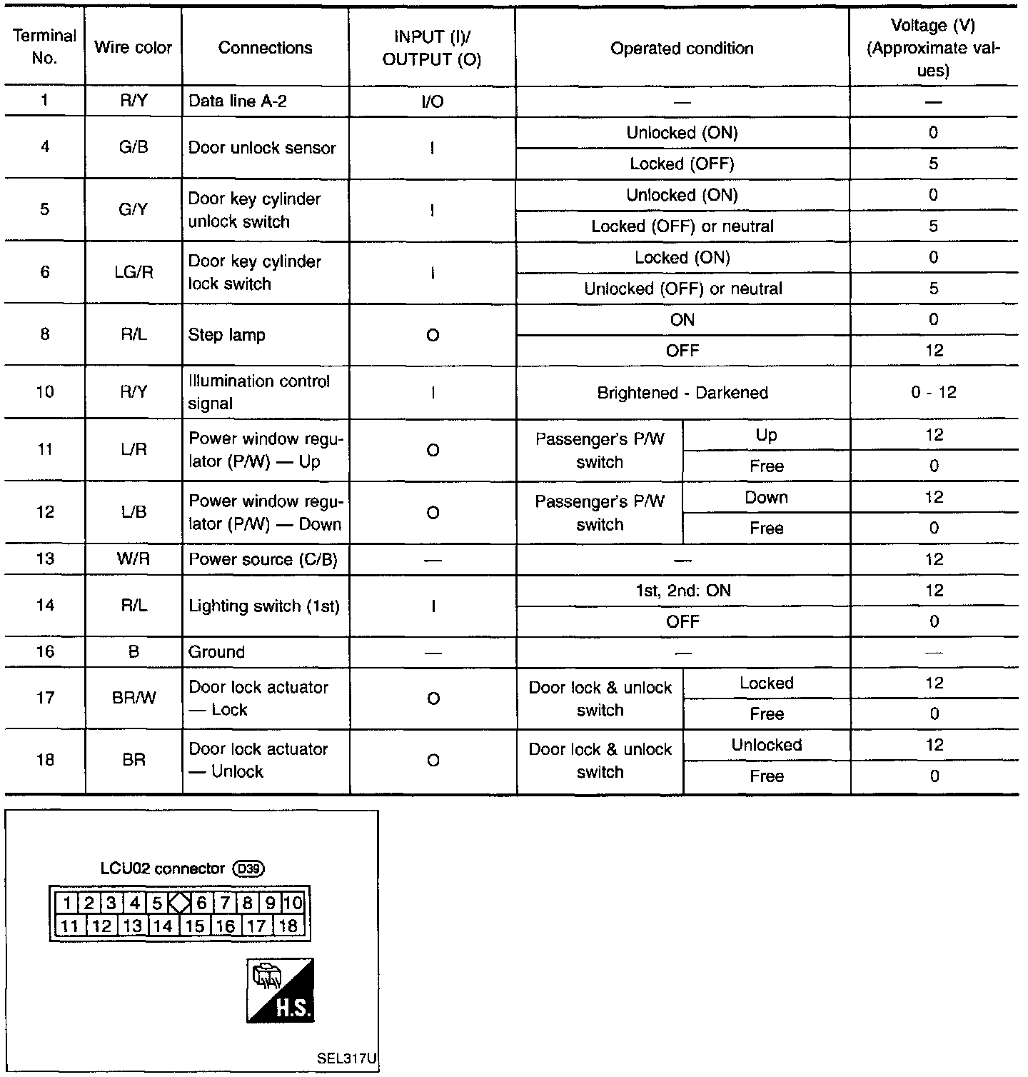 Driver Door Control Unit (LCU01) - Input/Output Operation Signal