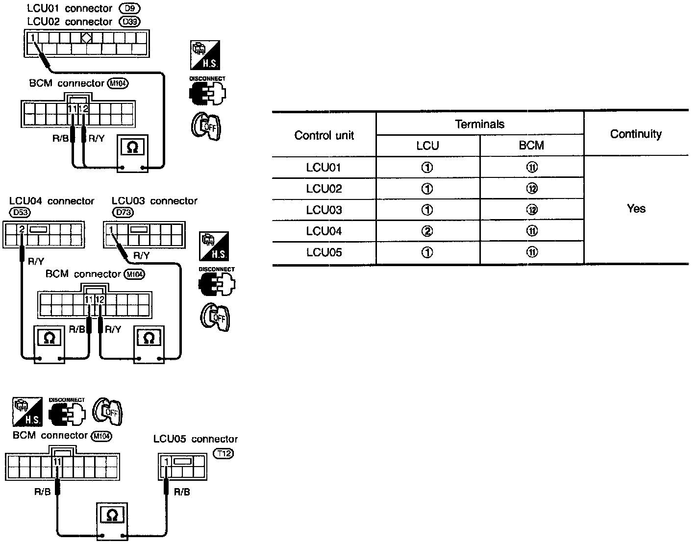 NOTE: When checking data line circuit, disconnect BCM and all LCU connectors.