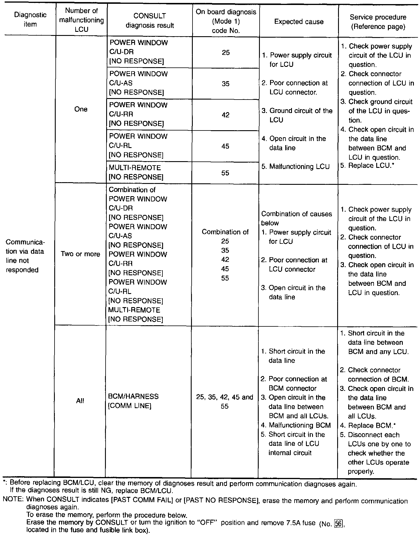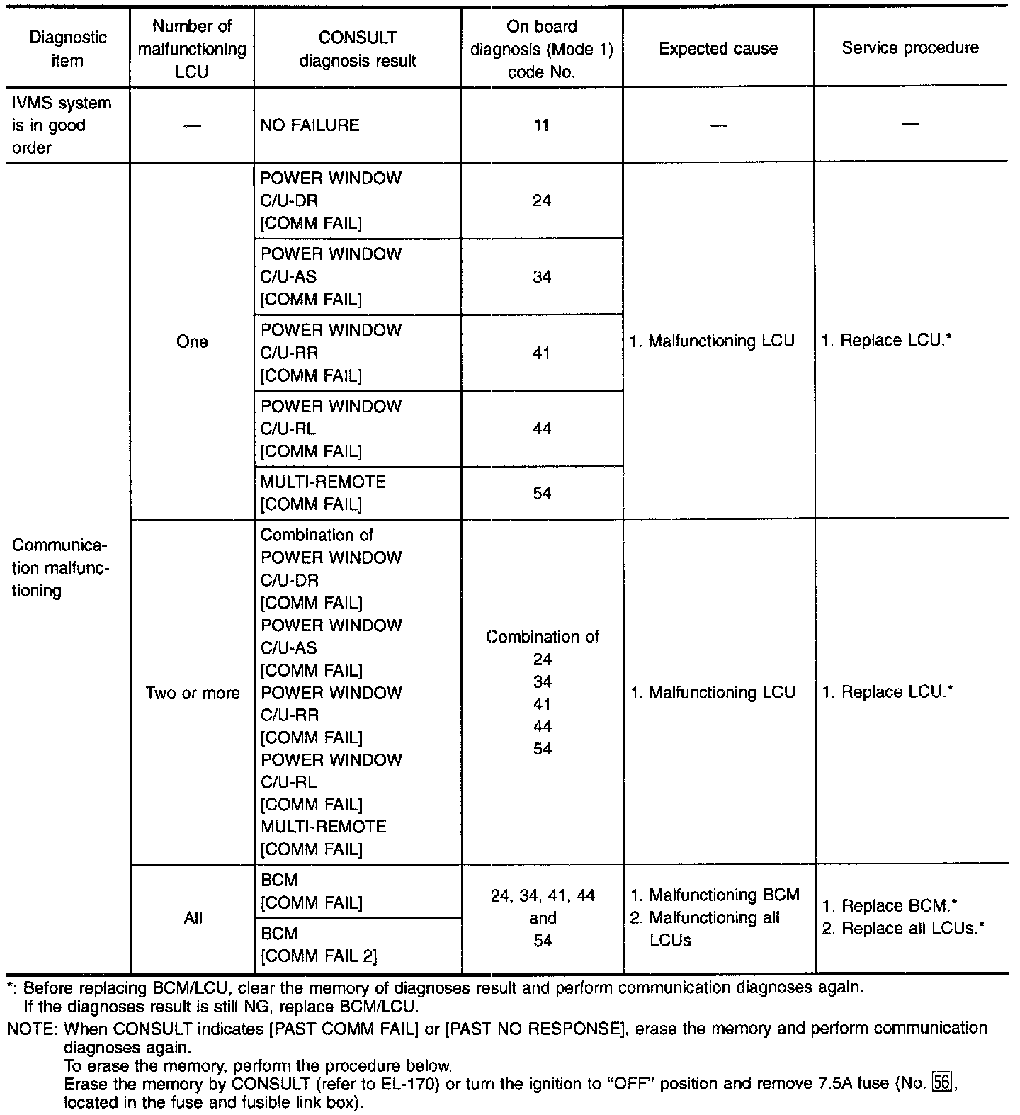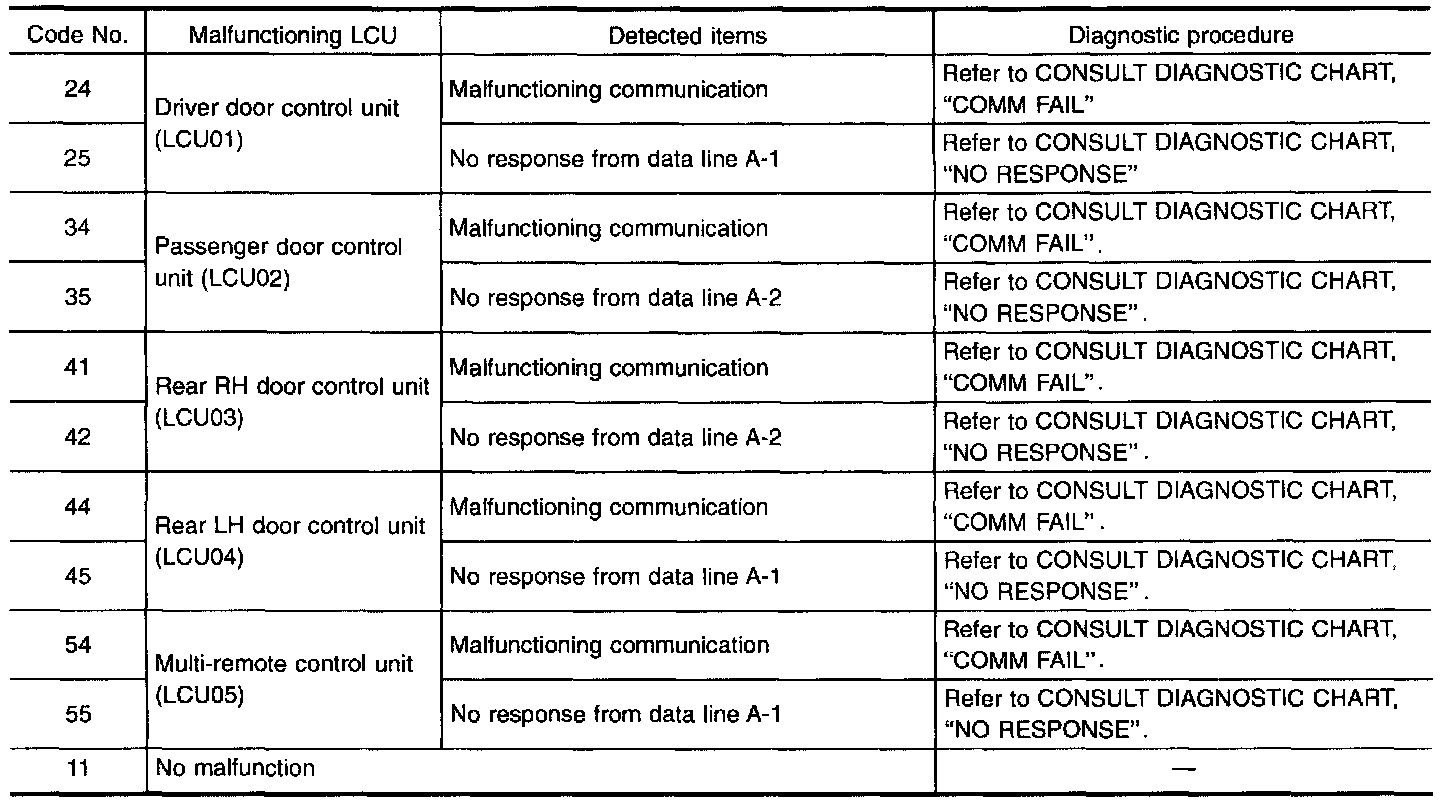 Malfunction Code Table