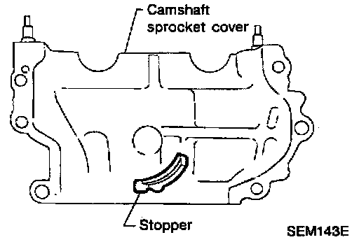 - The stoppers on camshaft sprocket cover prevent upper timing chain from disengaging idler sprocket.