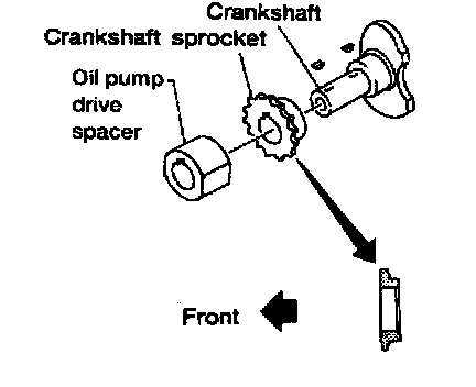 1. Install crankshaft sprocket and oil pump drive spacer.