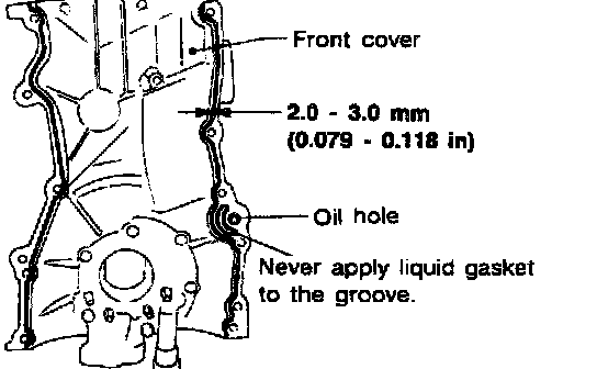 - Apply a continuous bead of liquid gasket to front cover.