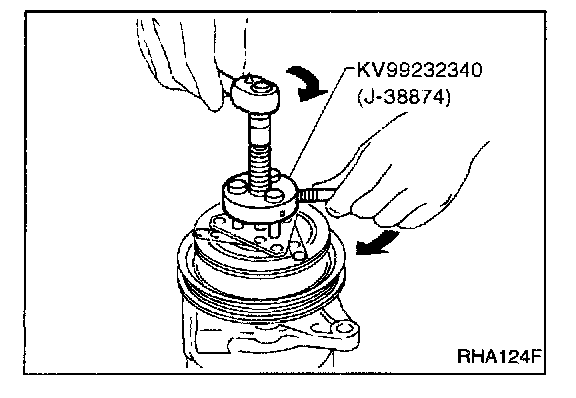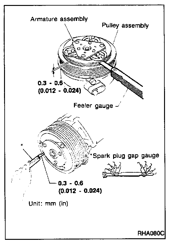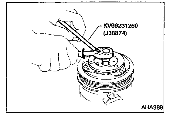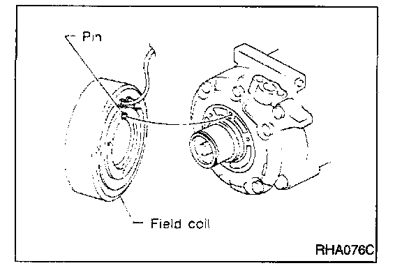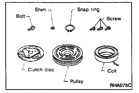 When replacing compressor clutch assembly, always conduct the break-in operation. This is done by engaging and disengaging the clutch about thirty times. Break-in operation raises the level of transmitted torque.