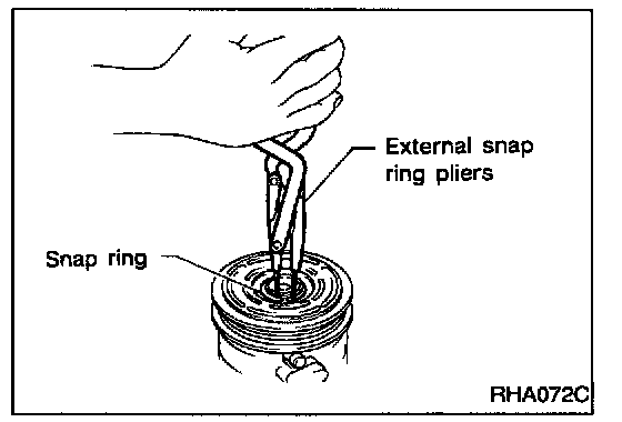 - Remove the snap ring using external snap ring pliers.