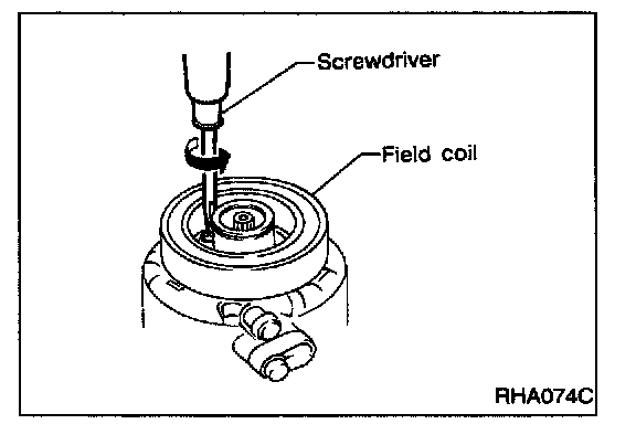 - Remove the three field coil fixing screws and remove the field coil.