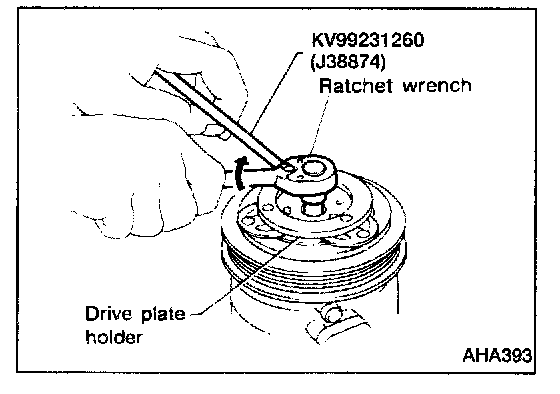 - Using the holder to prevent drive plate rotation, tighten the bolt to 12 to 15 Nm (1.2 to 1.5 kg.m, 9 to 11 ft.lb) torque.