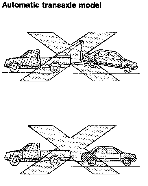 - Never tow an automatic transaxle model from the rear (that is backward) with four wheels on the ground. This may cause serious and expensive damage to the transaxle.