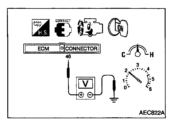 2. Set voltmeter probes between ECM terminal (46) (sensor signal) and engine ground.