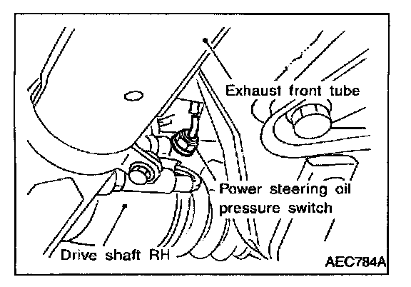 The power steering oil pressure switch is attached to the power steering pump and detects a power steering load. When a power steering load is detected, it signals the ECM. The ECM adjusts the IACV-AAC valve to increase the idle speed and adjust for the increased load.