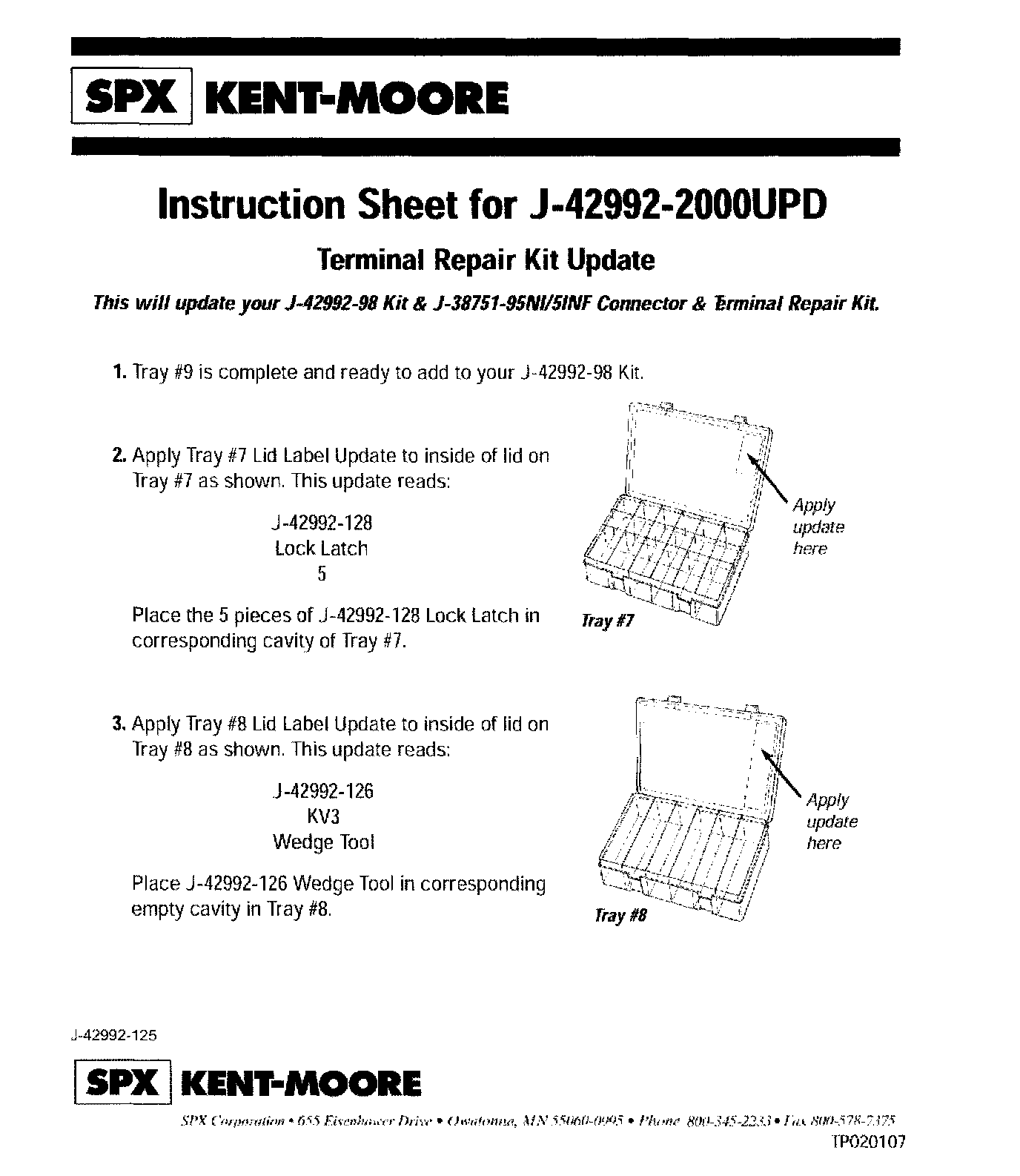 ^ An Instruction Sheet was shipped with the kit. It shows where to store updated kit components. Refer to "Instruction Sheet for J-42992-2000UPD" for additional information.