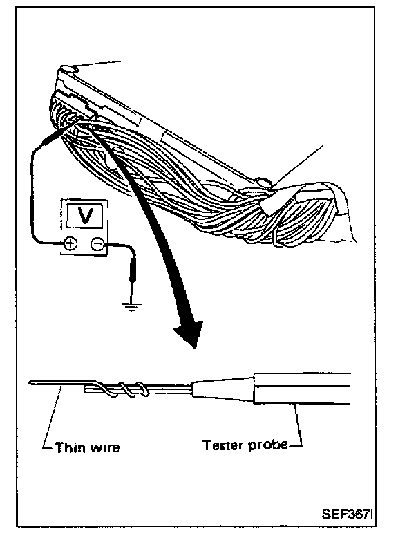 3. Perform all voltage measurements with the connector connected. Extend tester probe as shown to perform tests easily.