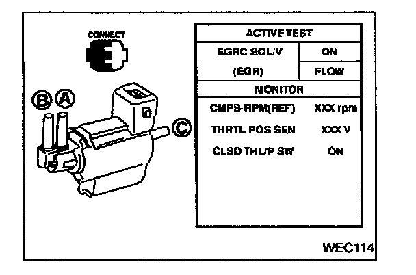 Perform "EGRC SOLENOID VALVE" in "ACTIVE TEST" mode.