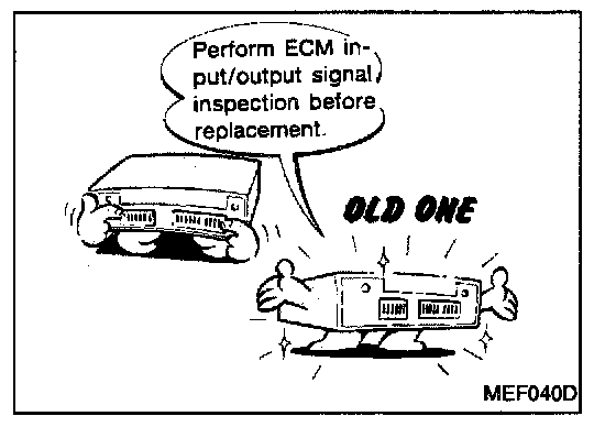 - Before replacing ECM, perform Terminals and Reference Value inspection and make sure ECM functions properly.