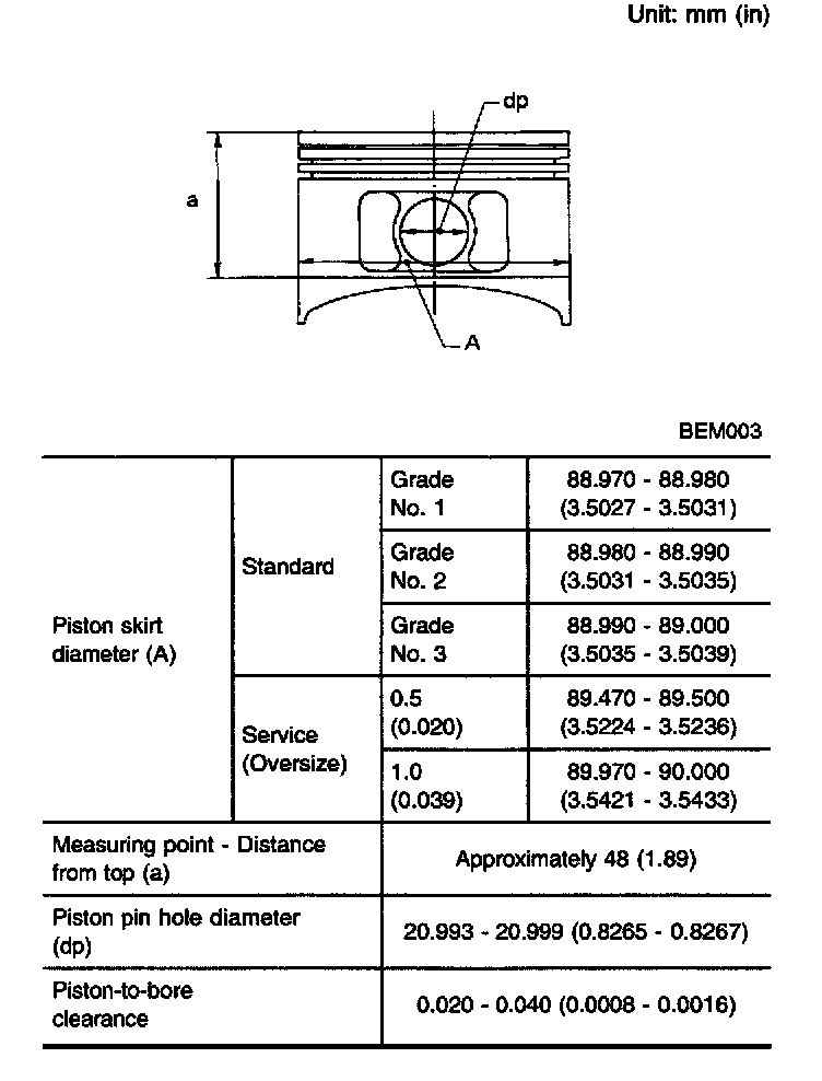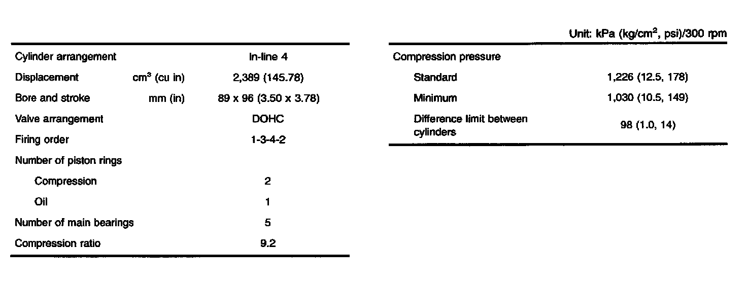 [ENGINE MECHANICAL]GENERAL SPECIFICATIONS