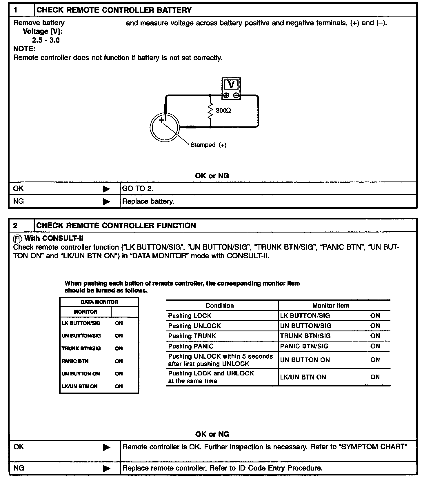 REMOTE CONTROLLER BATTERY AND FUNCTION CHECK