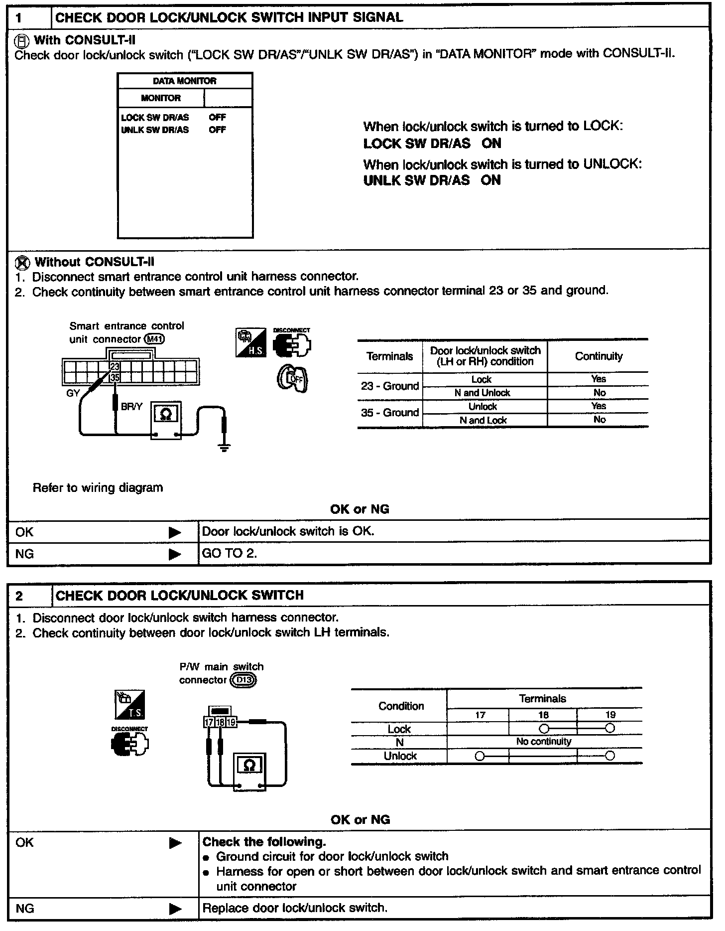 DOOR LOCK/UNLOCK SWITCH LH CHECK