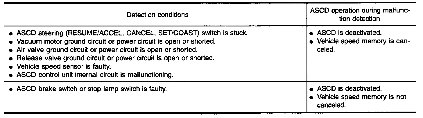 MALFUNCTION DETECTION CONDITIONS