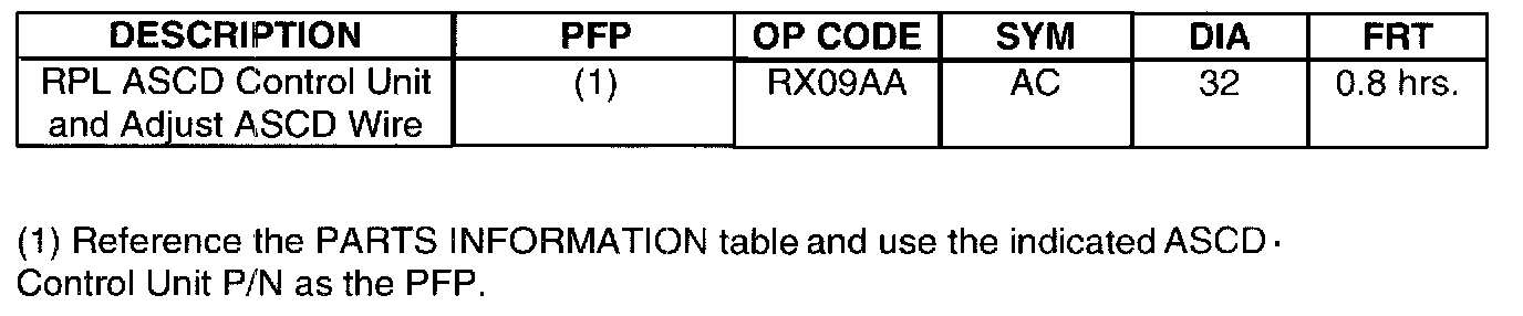 2. Adjust the ASCD Wire. For details en ASCD Wire adjustment, refer to the EL section/Automatic Speed Control Device/ASCD Wire Adjustment in the correct Service Manual.