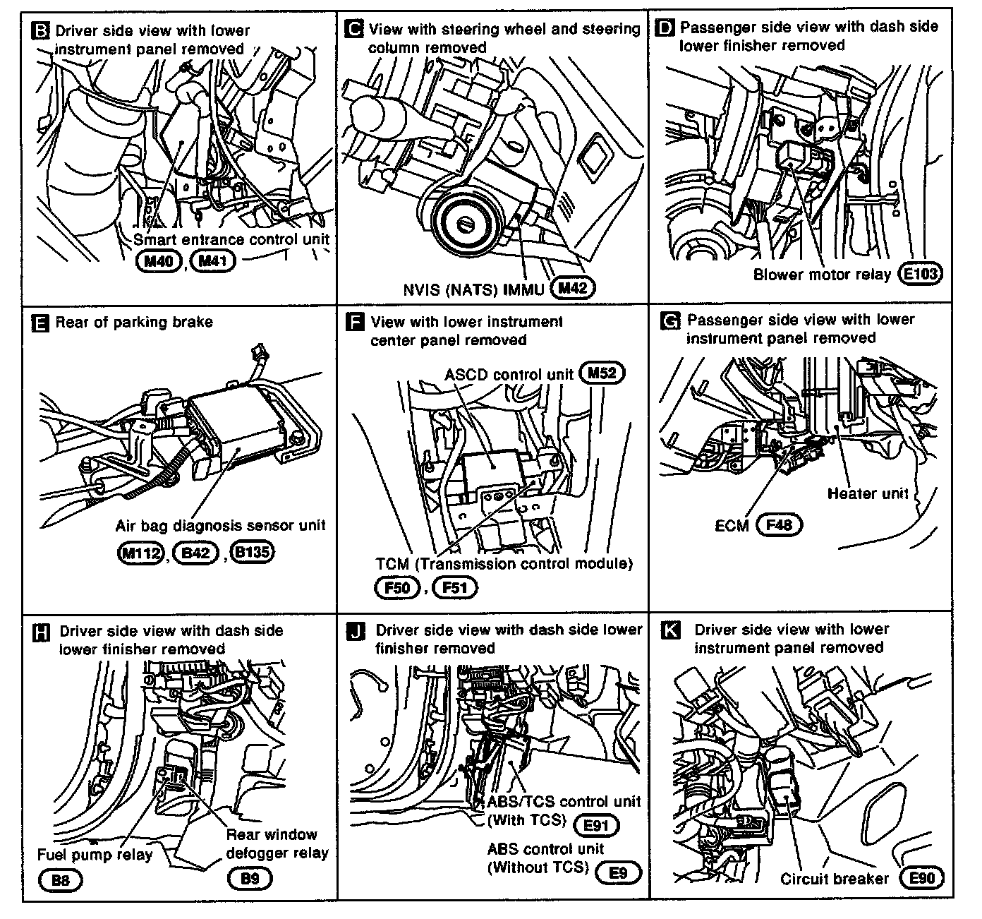 Component Parts and Harness Connector Location