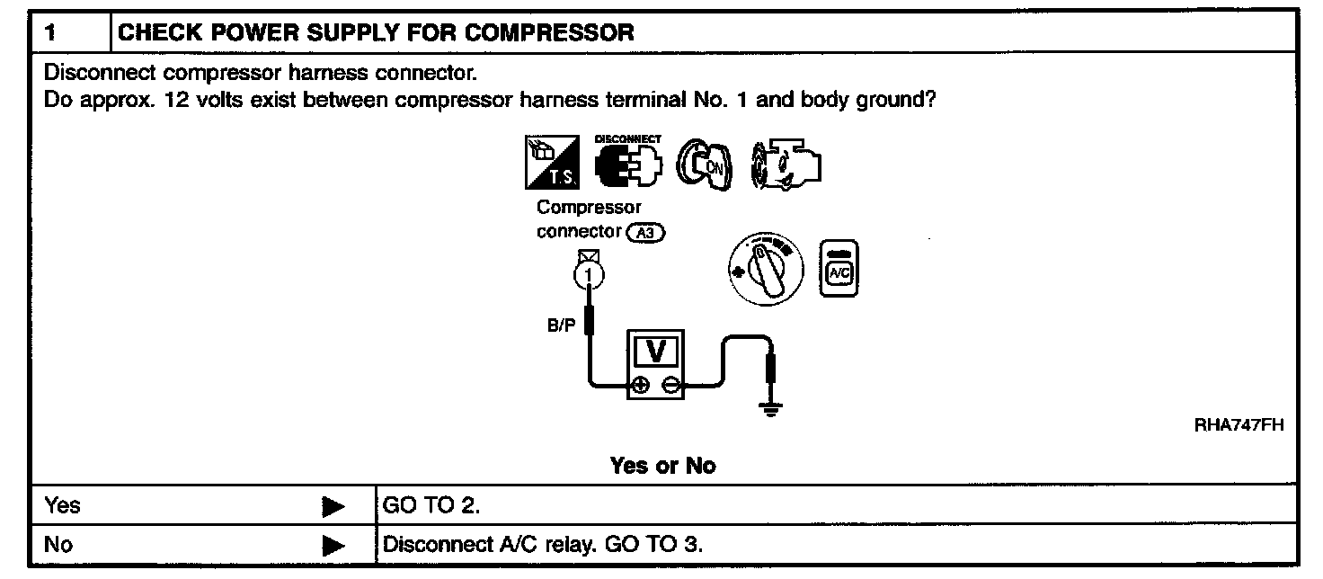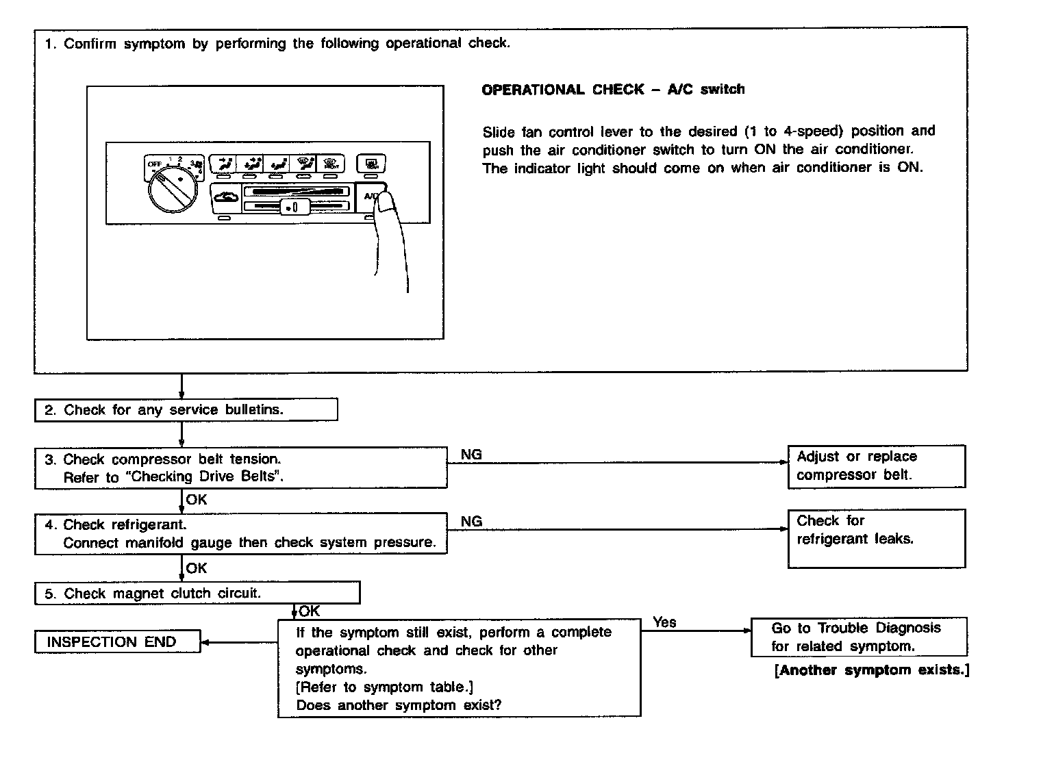 - Magnet clutch does not engage when A/C switch and fan switch are ON.