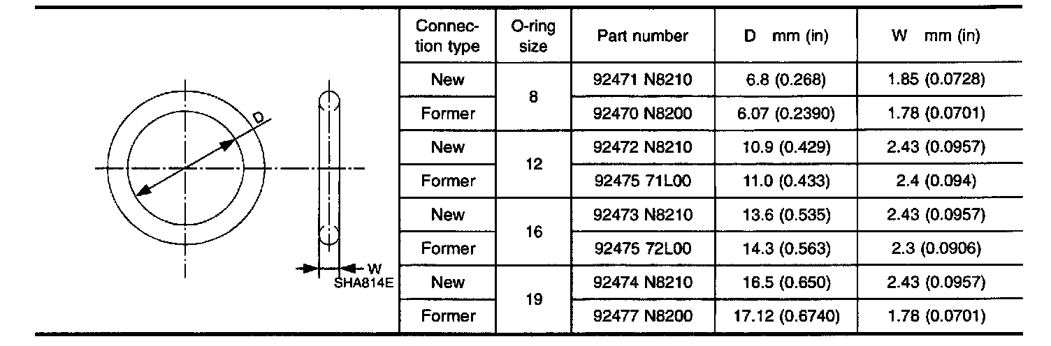 O-ring Part Numbers and Specifications: