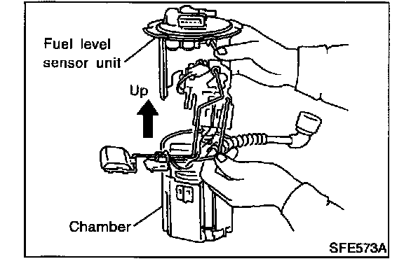 14. Pull up the fuel level sensor unit from chamber.