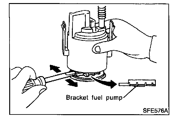 17. Remove fuel pump bracket, then pull out from the fuel filter.