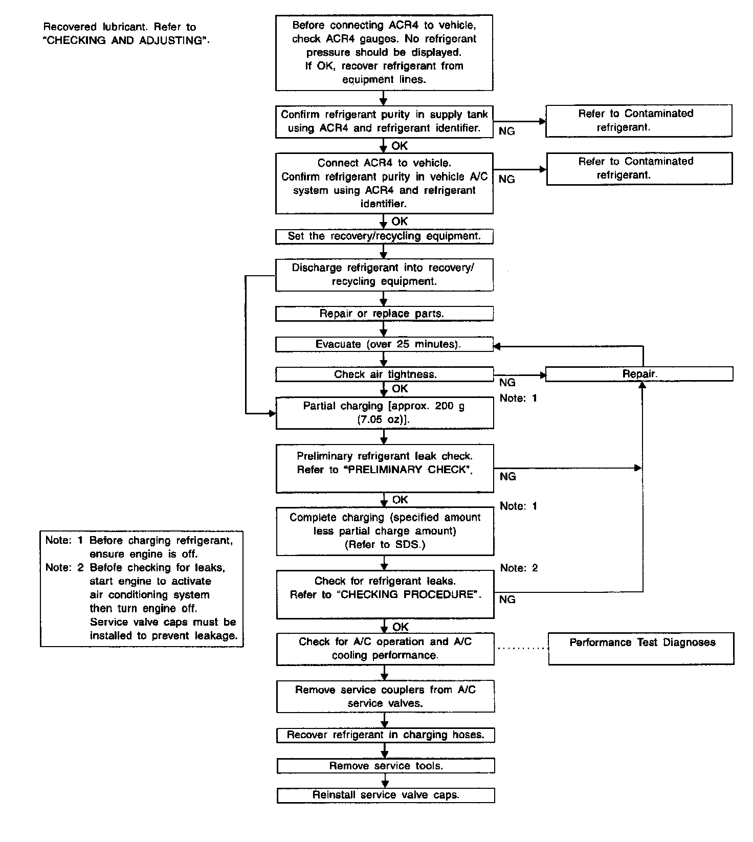 Avoid breathing A/C refrigerant and lubricant vapor or mist. Exposure may irritate eyes, nose and throat. Remove HFC-134a (R-134a) from A/C system using certified service equipment meeting requirements of SAE J2210 (R-134a recycling equipment) or J2209 (R-134a recovery equipment). If accidental system discharge occurs, ventilate work area before resuming service. Additional health and safety information may be obtained from refrigerant and lubricant manufacturers.