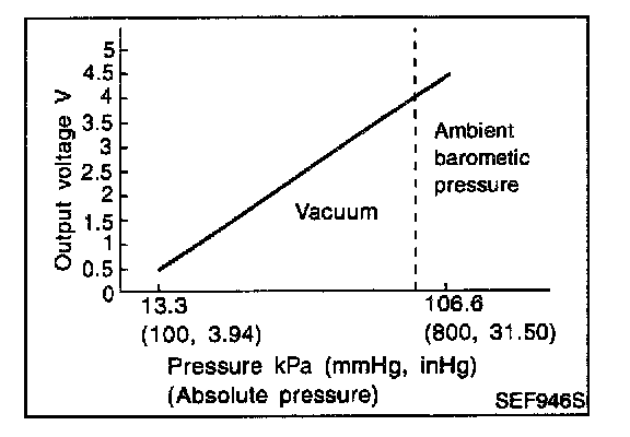 detects ambient barometric pressure and sends the voltage signal to the ECM. As the pressure increases, the voltage rises.