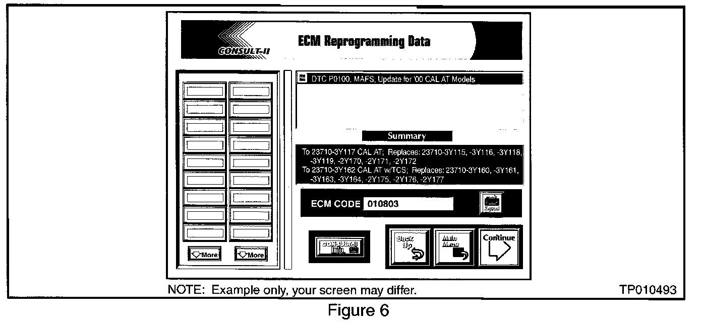 D. Click the "Continue" button on the ECM Data Reprogramming screen (see Figure 6) to proceed to CONSULT-II setup.