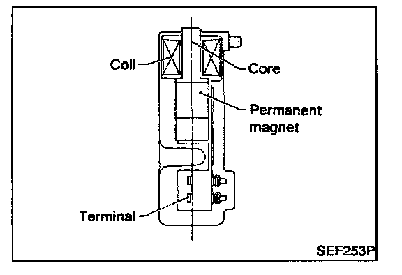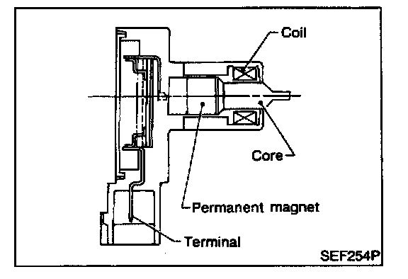 The sensor consists of a permanent magnet, core and coil. When engine is running, the gap between the sensor and the crankshaft pulley will periodically change. Permeability near the sensor also changes.