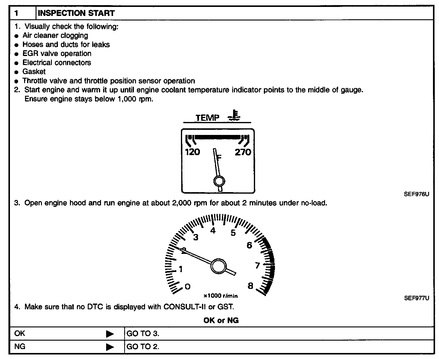 2. On air conditioner equipped models, checks should be carried out while the air conditioner is "OFF".