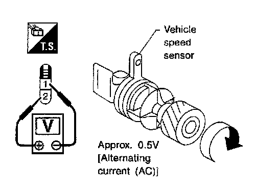 2. Turn vehicle speed sensor pinion quickly and measure voltage across 1 and 2.