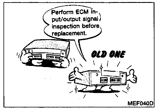 - Before replacing ECM, perform "ECM Terminals and Reference Value" inspection and make sure ECM functions properly.