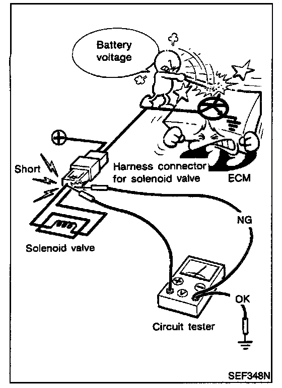 - When measuring ECM signals with a circuit tester, never allow the two tester probes to contact. Accidental contact of probes will cause a short circuit and damage the ECM power transistor.