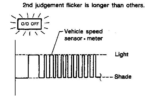 Diagnostic trouble code VHCL SPEED SEN-MTR with CONSULTS or 2nd judgment flicker without CONSULT-II is detected when TCM does not receive the proper voltage signal from the sensor.