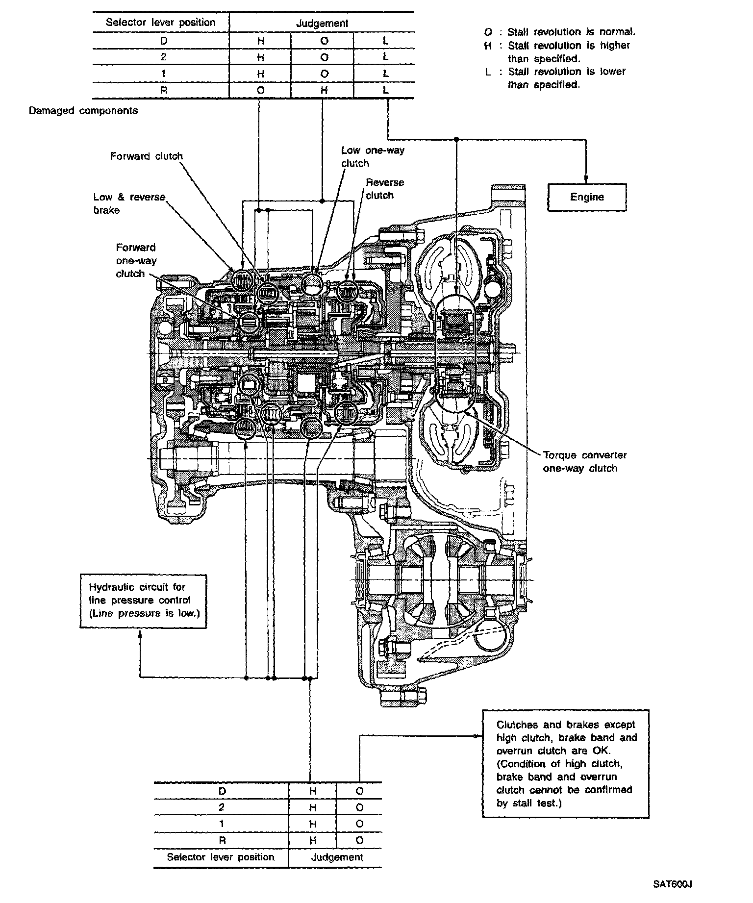 - Poor acceleration during starts. -> One-way clutch seizure in torque converter.