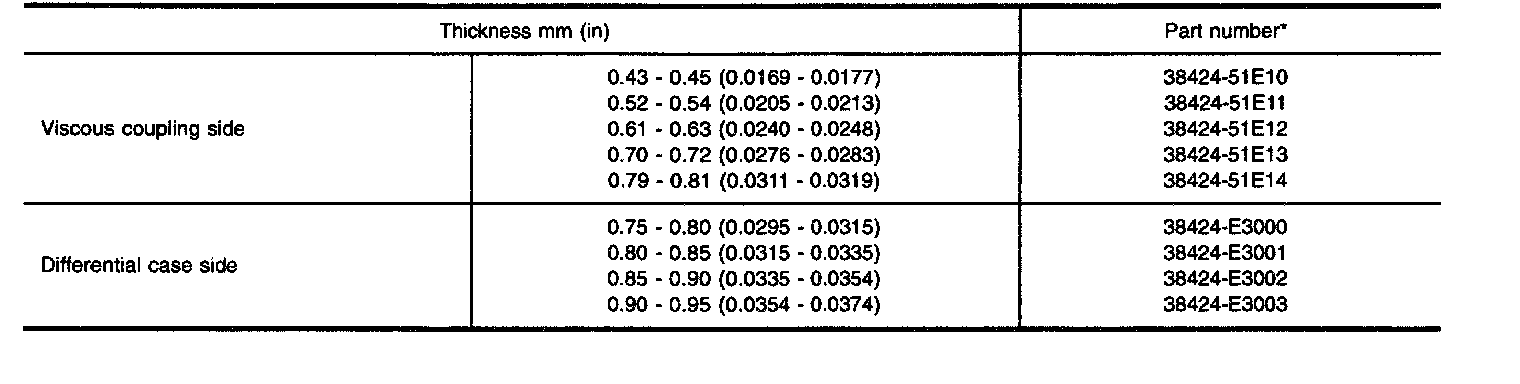 DIFFERENTIAL SIDE BEARING PRELOAD ADJUSTING SHIMS - RE4F04B