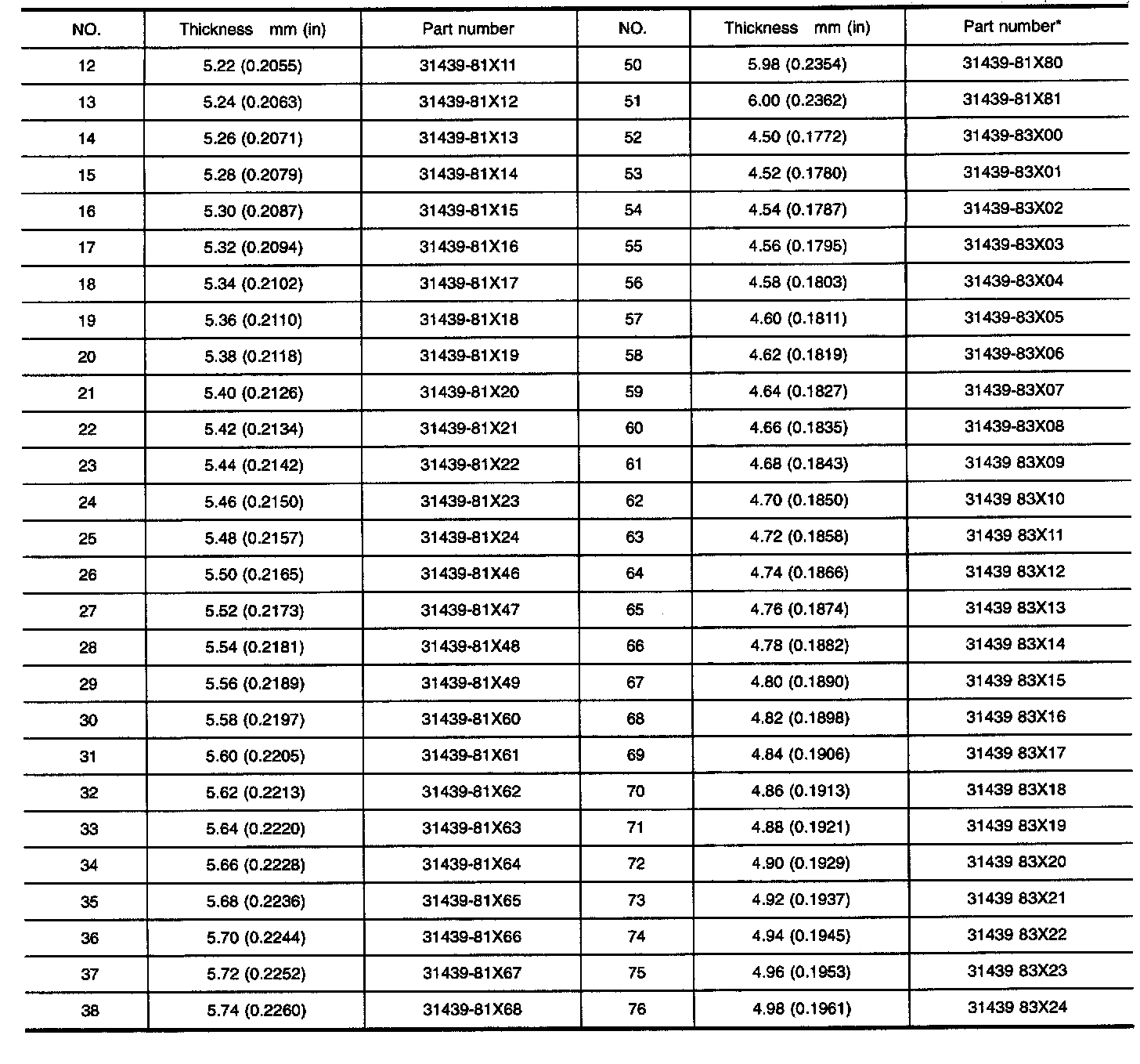 DIFFERENTIAL SIDE BEARING PRELOAD ADJUSTING SHIMS - RE4F04W